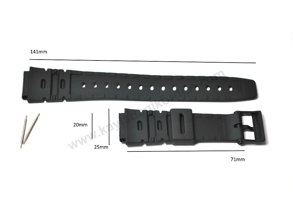 Casio DW-280 , DW-290 , DW-340 uyumlu Siyah Kauçuk Yedek Saat Kordonu Kayışı Kem